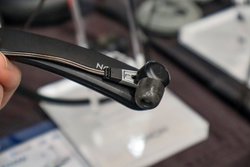 説明員によると、「音質を追求できるワイヤレス」とのこと。有線モデル「AH-C820」を無線化した製品で、aptX Low Latency、aptX、AAC、SBCといったコーデックに対応している。11.5mmダイナミック型ネオジウムマグネット・ドライバーを2基向かい合わせに配置したダブル・エアーコンプレッション・ドライバーの搭載が最大の特徴となっており、となりにはAH-C820も配置され、聴き比べができるようになっていた。予想実売価格は25,000円前後となる。