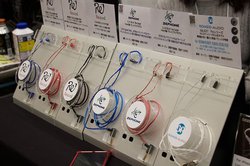 オヤイデ電気では同社ケーブル製品を一斉に出展。直営店限定で発売されたヘッドホン用の切り売りリケーブル「HPC-26QUAD」にヘッドホン端子を搭載して製品化した「HPC-QUAD 35」「HPC-QUAD 63」や、同じ線材を用いてHD 800用ケーブルとした参考出展モデルなどを展示している。