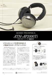 さらにさらに、オーディオテクニカから登場した “チタン” 素材を活用した密閉型ヘッドホン 「ATH-AP2000Ti」や、ソニーの最新ステージモニターイヤホン「IER-M9」、平面磁界駆動型イヤホンのRHA「CL2 Planar」など、贅を尽くしたプレミアムヘッドホンたちも徹底レビュー。ハイレゾ対応DAPでマニアからも人気を集めるiBasso Audioの最新モデルをはじめ、プレーヤーのご紹介も読み応えばっちりです。