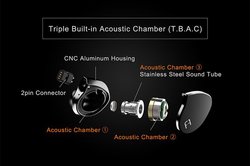 筐体内部には3つのアコースティックチャンバー(空気室)を搭載。内2つは、ハウジング容積を最適化し、イヤホン筐体内の空気の流れをコントロールすることで、ダイナミックドライバーの性能を引き出すとのこと。もう1つはサウンドチューブに採用されてろい、鼓膜へかかる空気圧を軽減し、低域の解像度向上を図っている。