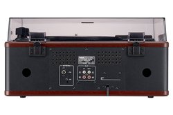 ターンテーブル部は本体内部のサブシャーシにバネを介して取り付けるフローティング構造を採用し、スピーカーからの振動を遮断するハウリング対策を施している。33 1/3/45/78rpmの3スピード対応で、レコードの再生が終わると自動的にトーンアームが戻るオートリターン機能を搭載する。カセットプレーヤーは再生専用で、ノーマル/ハイポジション(クローム)の両対応となる。