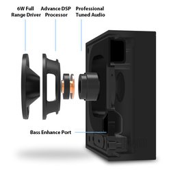 スピーカーユニットには出力6W、直径2インチのフルレンジドライバー1基を搭載し、低音増幅ポートも備えている。