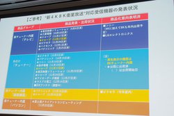 同協会理事長の福田俊夫氏、理事の木村政孝氏、4K8K推進センター長 宇佐美雄司氏らが登壇し、新4K8K放送の対応受信機普及や販売店の状況、新4K8Kについてサポートを行うコールセンターの近況などを通して報告した。