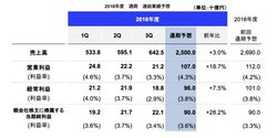 2018年度通期の連結業績予想は見直しを図った。米中貿易摩擦の影響などによりデバイスの顧客需要に変動が生じたことなどによる。通期予想は下表のとおり。同社が進める「量から質へ」の転換および体質改善が進み、当期純利益は10月30日に上方修正した前回予想を達成できる見通しとした。また最終利益は、「平成の30年間で過去最高となる」見込みとした。
