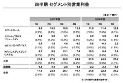 セグメント別では、2018年度第3四半期はスマートホーム、スマートビジネスソリューションの分野で売上高、営業利益ともに前年同期を上回った。
