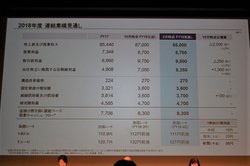 2018年度連結業績見通しは、前回昨年10月時点より、売上高は金融分野、半導体分野、モバイル・コミュニケーション分野、イメージング・プロダクツ&ソリューション分野の売上高を下方修正したことから、2,000億円減の8兆5,000億円へ下方修正。当期純利益は米国における法人税減額計上より1,300億円増の8,350億円へ上方修正した。
