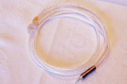 参考出展は、銀メッキ線を導体に採用したリケーブル「Brilliant force」。海外市場向けの製品で、クリアな塩ビ被覆を採用することで銀メッキ線が透けて見えるデザインとなっている。同社の従来モデルとは対照的な、高域が目立つきらびやかなサウンドが特徴だという。国内の価格や発売時期は未定としていた。