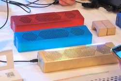 クラウドファンディングサイトGRENND FUNDING by T-SITEのブースでは、同サイトでクラウドファンディングを実施中、およびこれから実施予定の製品を出展。JDSoundのUSBスピーカー「OVO」や、スピーカー内蔵枕「HUMU」などを展示していた。
