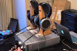 ブースではCES-A1を取り付けたイヤースピーカーで、ポータブル用ドライバーユニット「SRS-D10」「SRS-002」の音質を聴き比べられた他、オーバーヘッドタイプのフラグシップイヤースピーカー「SR-009S」と従来モデル「SR-009」の比較も体験できた。