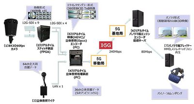 NTTドコモは、世界で初めて、次世代移動通信方式 5Gを活用した「360度8K3D60fpsVRライブ映像配信・視聴システム」を開発したと発表した。