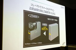 富士フイルムは、世界初の「屈曲型2軸回転機構レンズ」を搭載し、レンズの回転だけで様々な方向へ投射できる超短焦点プロジェクター「FUJIFILM PROJECTOR Z5000(FP-Z5000)」を4月に発売する。DLP方式を採用している。価格はオープンだが、100万円未満(税抜)の販売が予定されている。ブラックモデルのほかにホワイトモデルも用意されるが、こちらは今夏発売予定となる。