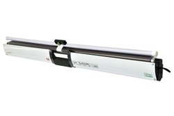 収納ケースには強固なアルミローラー製巻取り機構とグリップを内蔵。ケースごと設置面に貼り付け、グリップを持ち横にスライドさせていくだけで、右/左どちらの向きからでも簡単に取りつけや収納が可能とする。スクリーンシート端には水平器も搭載する。