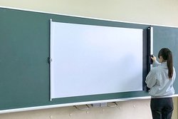 独自開発のマグネット式スクリーン生地「WE111」により、学校の黒板やマグネット対応のパーティションなどに磁力で貼り付けられる横開きのプロジェクタースクリーン。WE111はホットスポットを抑えた鮮やかな再現性、優れた耐久性に加え、ホワイトボードマーカーによる書き込み/消去も可能。曲面にも対応し、教育やビジネスシーンに適しているとする。