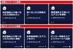 IFTTT上でのサービス名は「RATOC Remocon」。今回の対応により、「部屋の温度が18度を下回ったら、暖房24度をつける」「自宅に近づいたら、エアコンと照明をつける」といった自動制御や、「Alexaに “除湿をトリガー” と言ったら、エアコンの除湿をつける」といった声での操作ができるようになる。