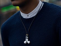 AirPodsの紛失リスクを防ぎつつ、身に付けるものにこだわるユーザーに向けて、イヤホンを使わない時にもエレガントに使用できる製品に仕上げたとしている。長さは67cm。カラーはホワイト/シルバー、ピンク/シルバー、ブルー/ゴールド、レッド/シルバー、ブラック/ゴールドの5色をラインナップする。