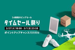 Amazonは、様々な商品が特価で販売される恒例の「タイムセール祭り」を2月27日(水)18:00から3月1日(金)23:59の54時間にわたって開催する。