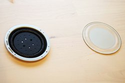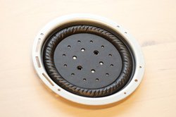 加振器はスピーカー中央部に3つ配置。ステレオ信号をそれぞれに分配して振動させ、ガラス管の再生時に音が一体となることで、空間に360度均一に立体的に広がるような「サークルサウンドステージ」を実現する。