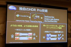 なお、HDR-PROとはBenQが独自に名付けたもので、HDR10とHLGをカバーしたHDR対応機能のことを指している。このHDR-PROにより、UHD BDや配信作品などで、より人の目で見た感覚に近いリアリティのある描写が可能になったという。