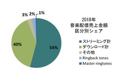 第4四半期の売上は前年同期比116%の167億円。この結果、 2018年年間(1月〜12月)の累計では対前年比13%増の645憶円となり、5年連続のプラス成長を記録した。また7年ぶりの600億円超えとなる。売上げの内訳はダウンロードが40%に対してストリーミングが54%となり、ストリーミングが初めてダウンロードを上回った。