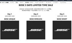 Amazonは、BOSE製品を日替わりで割引販売する「BOSE 3 DAYS LIMITED TIME SALE」を3月2日から3月4日まで開催する。
