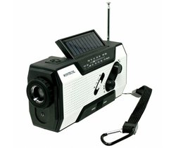 ソーラー充電/手回し充電/USB充電に対応した内蔵充電池、および乾電池のどちらでも使用可能なラジオ。明るさ調整機能付きのLEDスポットライトと、読書用LEDライトを搭載しており、暗い場所でも使用できるようになっている。
