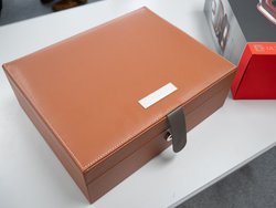 レザー張りの専用ケース、クリーニングクロスも同梱される。再生周波数帯域は5Hz〜48kHz。出力音圧レベルは96dB。インピーダンスは40Ω。質量は314g。