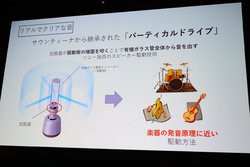 これに対し、「LSPX-S2は楽器の鳴りに近い商品なので、楽器の躍動感がよく出ていた」と鈴木氏。「通常のように、丸いコーン紙を振動させて音を出すのではなく、有機ガラス管を3つの小型加振機で叩くように振動させて音を出している。弦楽器、打楽器を鳴らす仕組みに近いので、今回のように楽器の音が再現できる」と述べた。