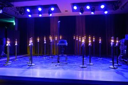 担当する楽器は、ステージの右1列がベース、中央2列がピアノ、左1列がドラム、最前列がブラスという割り振り。これら各楽器の演奏だけでなく、土岐麻子さんの歌声、コーラスなどもグラスサウンドスピーカーから奏でられるなど、他のスピーカーは一切使用されなかった。