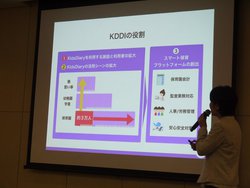 今回はワーキングマザーである社員からKids Diaryの存在を知らされたことがきっかけとなり、他の電子連絡帳アプリにはない使い勝手やすぐれた機能をもち、保育園と自治体とのやりとりも効率化できる強みをもつ同社との提携に至ったことが紹介された。「ここにKDDIのアセットを積み重ねると、さらにいいものになると思った」と説明。「KDDIは通信とライフデザインの融合を標榜している。通信をセンターにして、ライフデザインサービスを積み重ねながら、お客様の体験価値を上げていきたい。通信インフラ、スマホ、IoT機器などを重ねたKDDIアセットで、まさに保育現場の体験価値を高めていきたいと思っている」との意気込みを語り、「KDDIはKids Diaryとの提携で、保育ICT事業に参入する」とした。