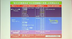 「4K・8K番組の充実と、対応機器類のラインナップの充実という2つが課題だと受け止めている」とし、コンテンツ面については「ラグビーのワールドカップが控えていたり、9月にはBS日テレ4Kも新たに開局する。家電店の方の話では、オリンピックを4K8Kで見たいという期待は大きいと聞いている。今までやってきたことをさらに一歩一歩積み重ね、地道に普及推進に努めていきたい」と述べた。