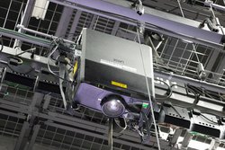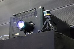 8K 3D映像は、アストロデザイン製の8K/120p対応プロジェクターで投映。3Dはフレームシーケンシャル方式で、専用のメガネを用いて鑑賞する。ベースとなる8K 3D映像は、REDの8Kビデオカメラ2台を用い、ハーフミラーを使って撮影されたとのことだ。舞台床面の4K映像は、天井から下向きに設置されたプロジェクターで投映される。