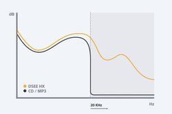 DACには32bitのものを採用。ネイティブで最大11.2MhzのDSD、最大192kHz/24bitに対応する。ハイレゾ認証も取得しており、HDMIでは最大8ch・96kHzのLPCM、2.8MのDSD出力を行うこともできる。独自のアップスケーリング技術「DSEE HX」を搭載することで、MP3などの圧縮音源をCDやハイレゾに近い品質に変換することもできるという。
