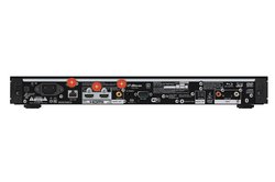 外形寸法は430W×54H×265Dmmで、質量は3.9kg。入力端子として、HDMI2.0×1、HDMI1.4(音声のみ)、アナログRCA出力(赤/白)、光デジタル(角型)、同軸デジタル、イーサネット、USB、RS-232C、IR REMOTEを搭載する。