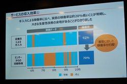 本サービス提供に先立ち、先行導入して実証実験を行った大草薬品では、製造ラインの稼働率が、従業員の手入力の計測では92%と改善余地はないかに思われたが、センサーを取り付けた実測では70%と約20ポイントも低いことが判明。定量データを元に、生産能力10%アップが見込まれる。