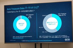 「CDP(Customer Data Platform)は基本として人にまつわるデータです。人にまつわるデータは企業が別の形でたくさん持っています。お客様の理解を深めるための基盤として、それが徐々に進化していった形がCDPです。アームはIoTを次世代の成長の柱にしようとしています。ここには人という切り口はなく、中心にあるのはデバイスです。そこへ、トレジャーデータが中に入ったことにより、別々のものだったCDPとIoTの2つがどうもくっつきそうだ、CDP、IoTのどちらの目から見てもユニークな差別化が図れそうだということが最近よくわかってきました」と語る。