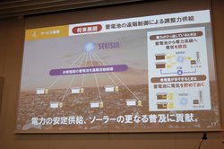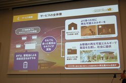 「この事業で儲ける意思はまったくない」と断言。余剰電力をいかに有効に活用するかが趣旨であり、ユーザーの余剰電力の課題を解決すると同時に、現在、約4割ある住宅用太陽光発電と蓄電池を新築時に採用するユーザーを、本サービスの提供により、「新築されるお客様がより安心して住宅用太陽光発電と蓄電池を導入できる。その割合を5割まで引き上げたい」と訴えた。