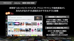 また、録画してある番組だけでなく、これから放送される番組も対象に、ユーザーの好みに合いそうな番組をレコメンドする「みるコレ」機能も装備。今回から新たにAIレコメンドシステムを搭載し、クラウドに蓄積した膨大な視聴データに基づき、機械学習をはじめとするさまざまなアルゴリズムでユーザーの関心や視聴パターンを推定することで、より簡単に番組を選べるようになるという。