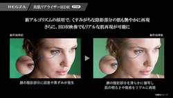 また、人物の肌をリアルに描写する機能「美肌リアライザー」も、新たにHDR映像にも対応した「美肌リアライザーHDR」へと進化させた。新アルゴリズムの採用によって、くすみがちな陰影部分の肌も艶やかに再現するよう配慮した。