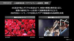 まず画質面では、新開発の高輝度全面直下型LEDバックライトと、自社開発の新映像処理エンジン「レグザエンジンProfessional」を搭載。これにより、輝きと引き締まった黒を再現するとともに深層学習などのAI超解像技術を活用することで、4K放送や地上デジタル放送などをノイズの少ないきめ細やかな高画質映像で再現するとしている。
