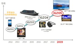 低消費電力や大画面化は有機ELディスプレイの駆動用TFTとしても適しているため、今後の有機ELディスプレイの展開にも寄与するという。今後はIGZO5の技術を活用することで、8Kディスプレイのラインナップ拡充を実施、また超低消費電力モバイル、超高速駆動/高画質のプロ用モニター、中型有機ELディスプレイなどへの応用を進めていくとしている。