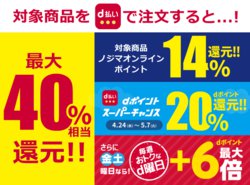 また対象商品を「d払い」で注文することで、ノジマオンラインポイント14%、dポイントスーパーチャンス20%、金土は最大dポイント6倍の3つを合わせて最大40%相当の還元が受けられるという。