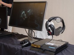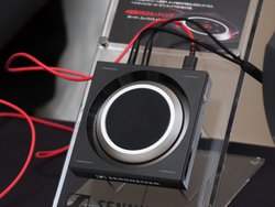 試聴スペースの隣の一室では、同社ヘッドホン/イヤホンのもう1つの柱であるゲーミング向け製品を集中展示。フラグシップモデルの密閉型ヘッドセット「GSP600」、開放型ヘッドセット「GSP500」の他、7.1chバーチャルサラウンドや96kHz/24bit信号に対応、ヘッドセット/スピーカーのワンタッチ切り替え機能などを搭載するUSBヘッドホンアンプ「GSX 1000」などが試聴可能となっており、PS4やノートPCに接続して実際にゲームをプレイすることも可能となっていた。