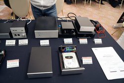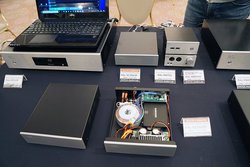 ラトックシステムは、RATOC AUDIO LABブランドより、ストレージ用ケースの新モデルを出展した。6月発売予定で、3.5インチ用の「RAL-EC35U3P」が6万円前後、2.5インチ用の「RAL-EC25U3P」が7.5万円前後の予定。USB端子を持つネットワークオーディオ機器やオーディオNASなどと組み合わせて使用する製品だ。