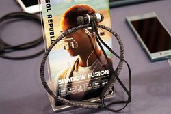 同社が扱うブランド群がずらりと並ぶ中、最も注目なのがSOL REPUBLICの「SHADOWS FUSION」だ。すでに当サイトでもレビュー記事を掲載しているが、ネックバンドスタイルのワイヤレスイヤホンで、素材にフレックニット・ファブリック素材、いわゆるニット生地が使われており、とても肌触りがよい。