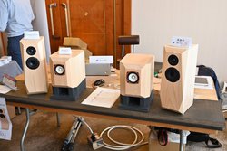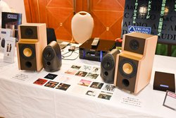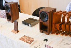 広島県府中市から松葉製作所が初出展。主に自動車エンジン部品の鋳造木型を製造するという個人事業所で、この度スピーカーの製造・販売を開始したとのこと。今まで近隣の家具店での展示やWEB販売を行っていたが、今回イベントに初出展を行ったという。