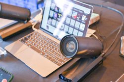 エンクロージャーに真空を用いたスピーカー「SSB-380S」も展示され、Macbookと組み合わされ実際の音が体験できるようになっていた。また、製品を試聴するとケーブルクリップがプレゼントされるキャンペーンも開催。数量限定ではないとのことなので2日目の来場者もブースを訪れることをおすすめしたい。