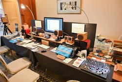 真空管オーディオフェアでのデモとは違い、今回のヘッドフォン祭では机上に設置し、ニアフィールドで展示を実施。説明員によると、通常の広く空間をとる設置方法だけでなく、今回のようなニアフィールドでのリスニングにも適しているとのことだ。