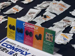 エントリージャパンは、イヤーチップの人気ブランドCOMPLYの各種製品に加えて、INEARZ AUDIOのユニバーサル型イヤホンも展示。earasers(イヤーレーサー)のイヤープラグ(耳栓)もアピールしている。