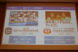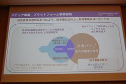 テレビ3台目まで追加料金なしとして好評の「スカパー!基本プラン」は、昨年10月発売開始から半年で契約件数が30万件を突破。これまで半額を得ていた2台目・3台目の料金を無料とすることで減収につながるが、「複数台で家族別々に視聴したり、レコーダーに録画したりすることで視聴機会が増え、契約減につながる。2,3台目追加料金なしのお得感もお客様への効果は大きく、長期的には増収につながる」との見方を示した。