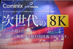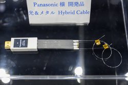 Cominixは「次世代の8K」を掲げ、144Gbpsの伝送に対応したHDMIケーブルを参考出展した。プラスチック製の光ファイバーと金属線を組み合わせたハイブリッドケーブルとなっており、機器に接続するだけで動作する。また光を用いるため、100m以上の長距離設計も可能だという。なおデモで使用されていたものは、パナソニックが開発したプロトタイプ。このケーブルの端子部に使用されている、光伝送を行うためのCWDM伝送モジュールをCominixが提供している。